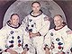 Left - Portrait of the Apollo 11 crew: Neil Armstrong, commander (on left); Michael Collins, command module pilot (mid); and Edwin "Buzz" Aldrin, lunar module pilot. Right - The crewmen leave the Kennedy Space Center's Manned Spacecraft Operations Building during the prelaunch countdown, then are loaded into the van for the drive to Launch Complex 39A.