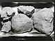 A close-up view of moon rocks, classified by Geologists as igneous (formed by melting) possibly from a lunar volcanic flow or from a large meteorite crashing into the moon. Some of the rocks picked up by the astronauts had rested undisturbed on the lunar surface for a million years or more. Public interest in the rocks was tremendous. In September of 1969 the first public exhibition was opened in the Smithsonian Institution in Washington. Thousands lined up to get a glimpse of a moon rock, but many found it disappointingly ordinary.