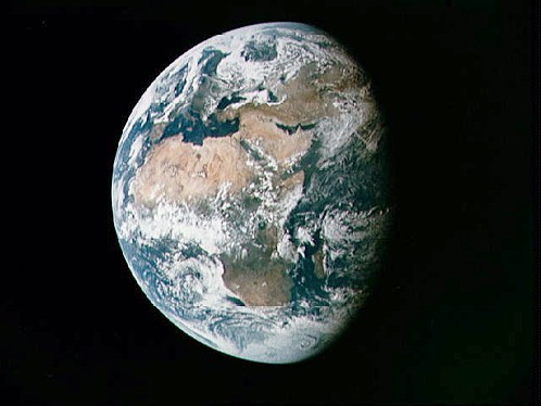 Magnificent view of Earth, showing Africa, Europe and Asia taken by the Apollo 11 crew about 98,000 nautical miles from Earth.